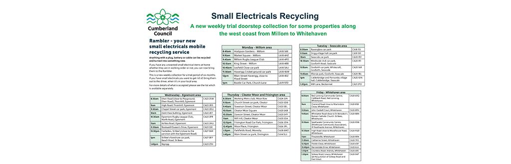 This is one of over 40 UK projects funded by Material Focus, the not for profit leading the Recycle Your Electricals campaign, who have provided £62,744 for the Small Electricals Recycling Project. Cumberland Council will lead the way locally and join other projects around the country in making it easier for 10 million UK residents to recycle their electricals.